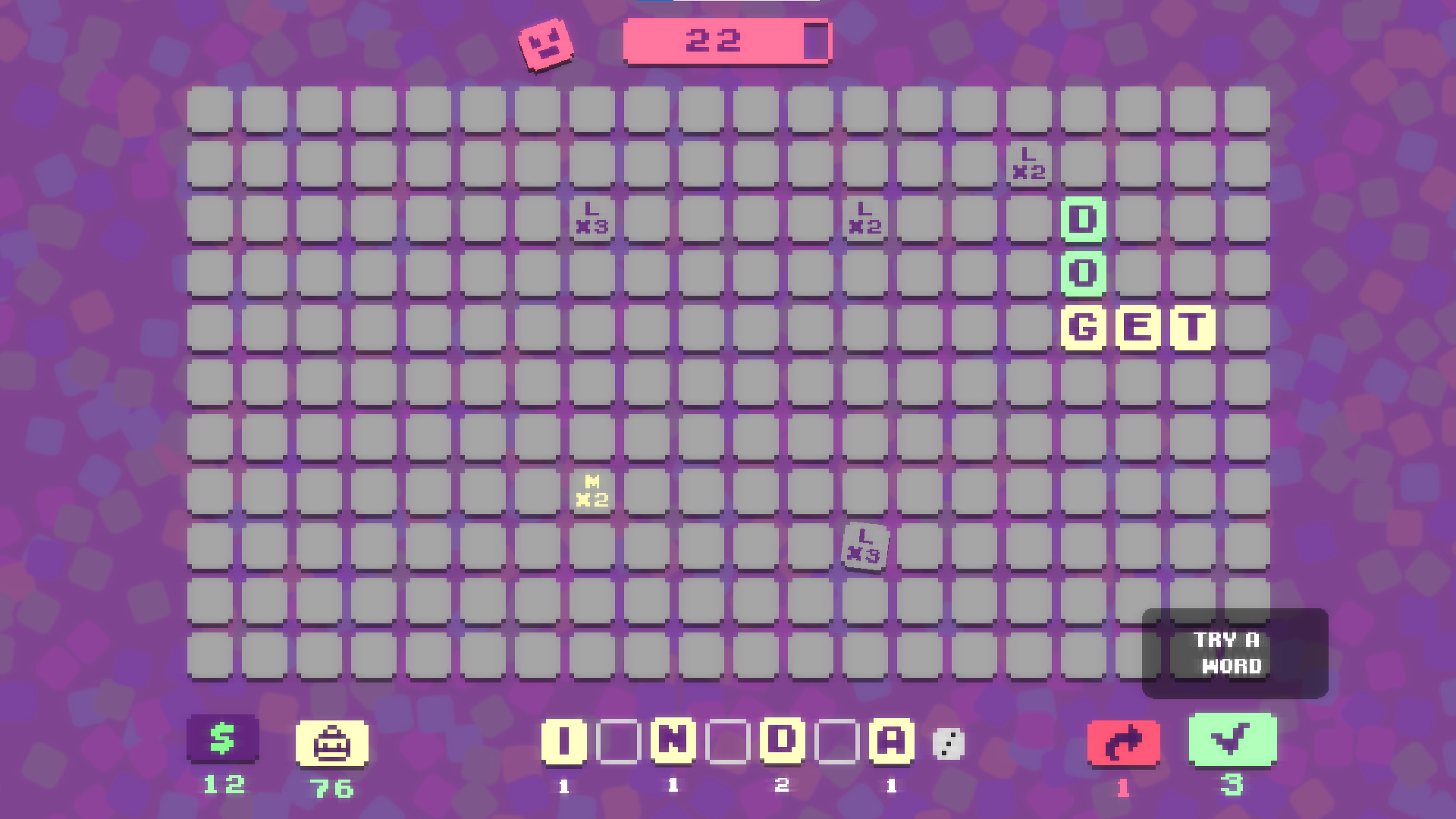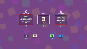 Lexibble is a word-game combining the rules of Scrabble with roguelike mechanics. Fight enemies by accumulating maximum damage and purchase various upgrades that enhance your power throughout the game !